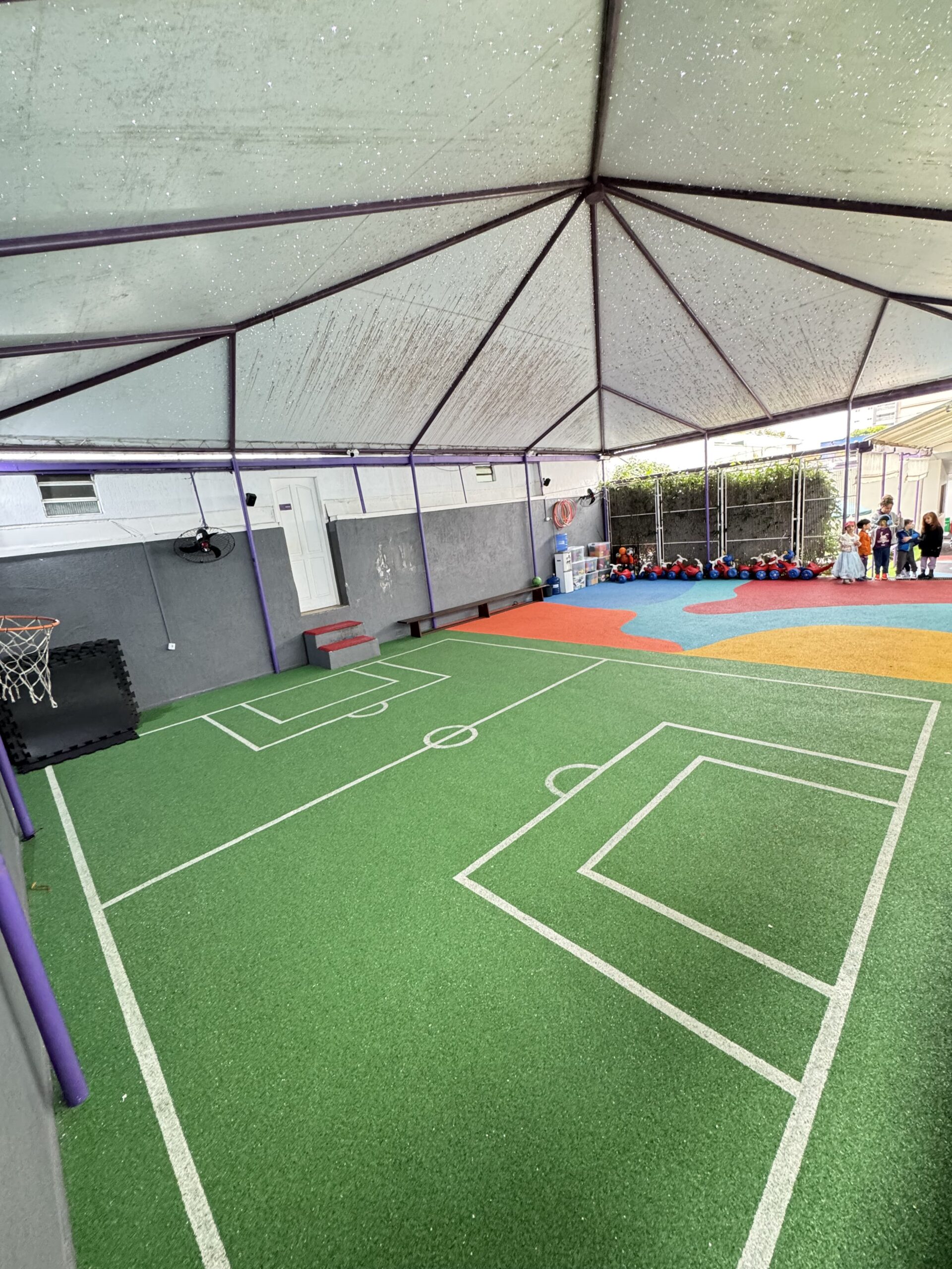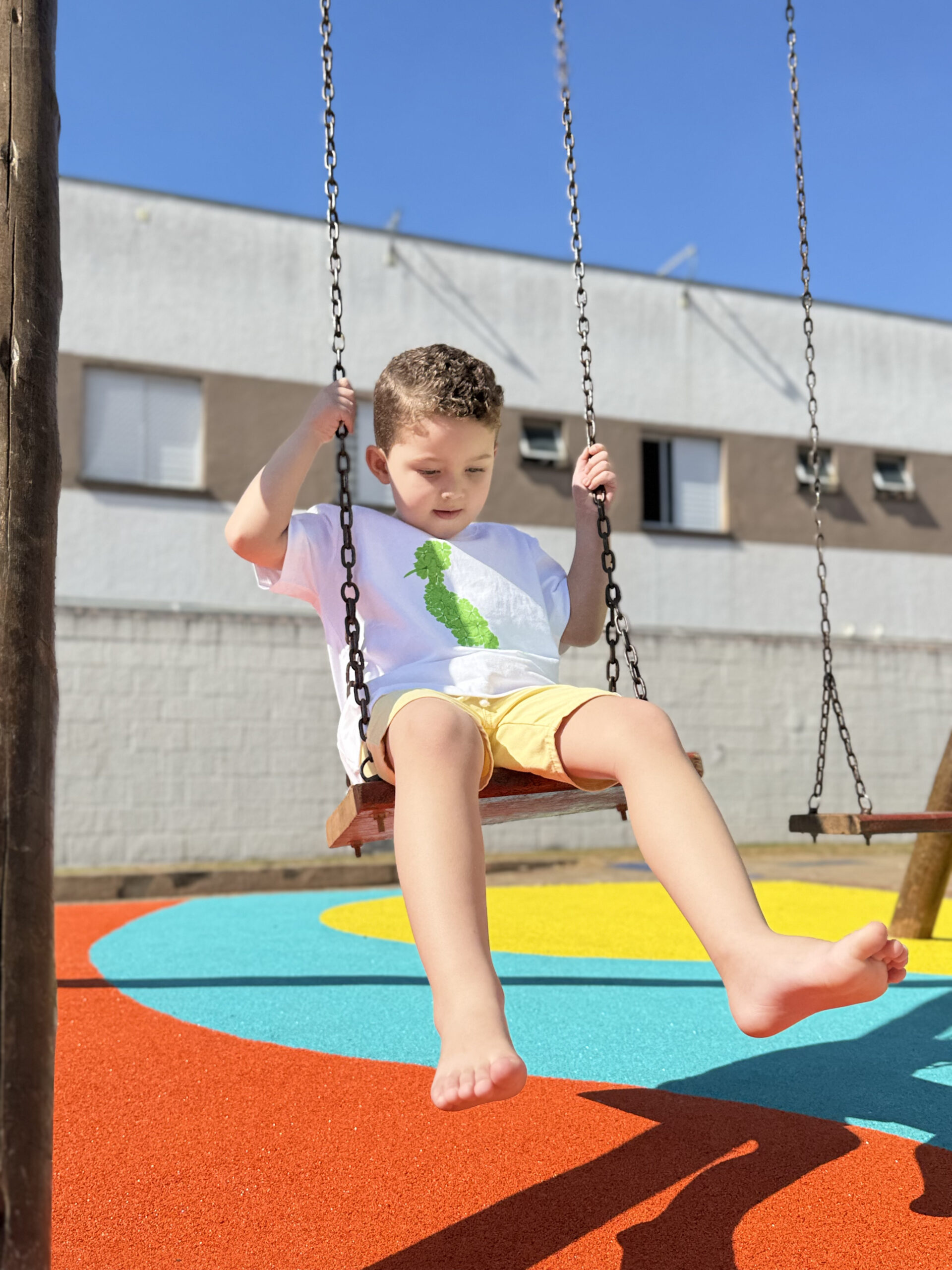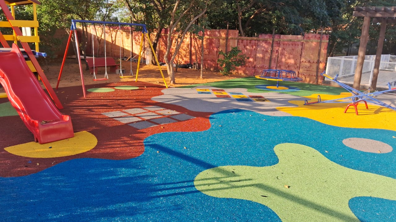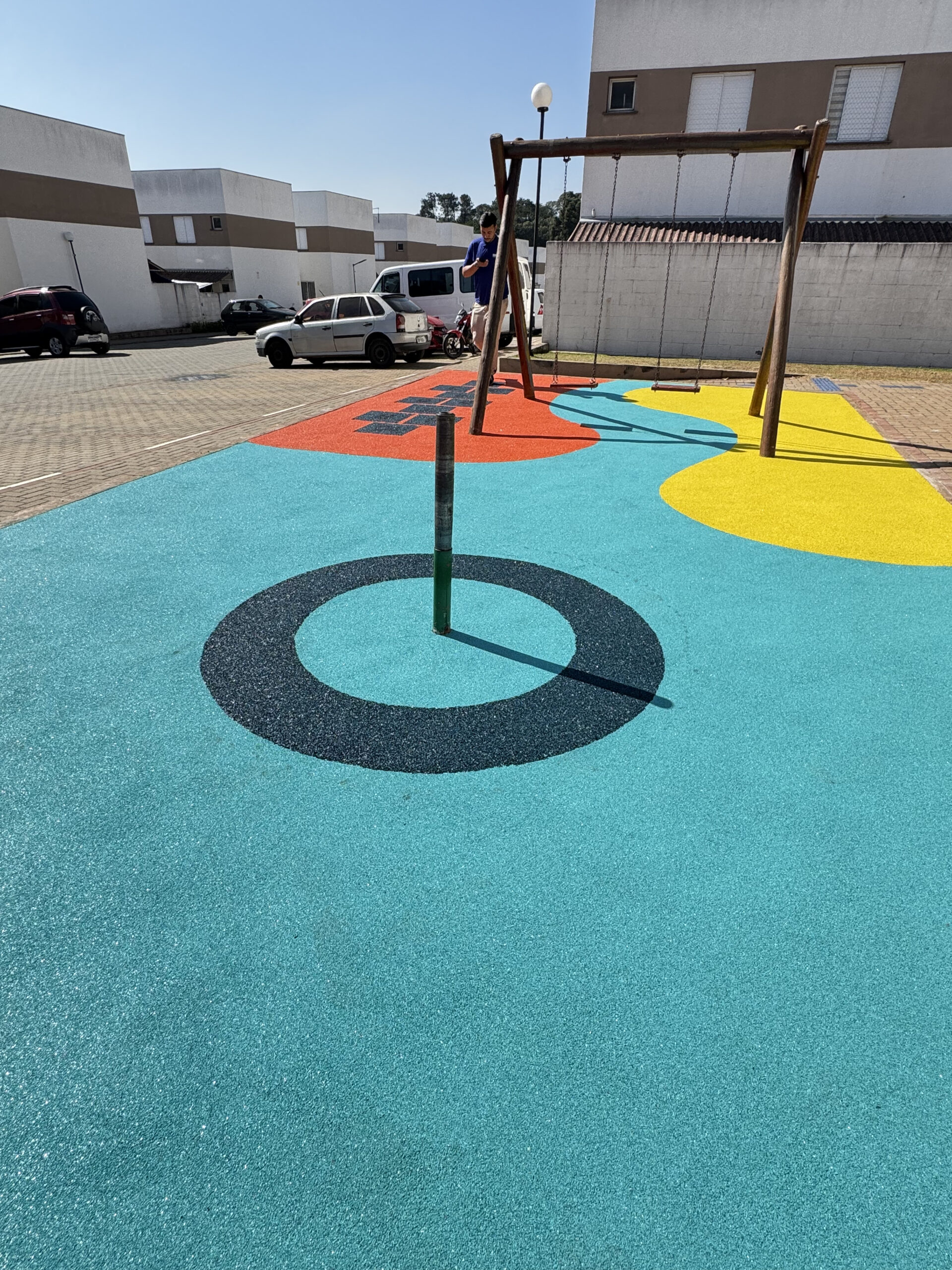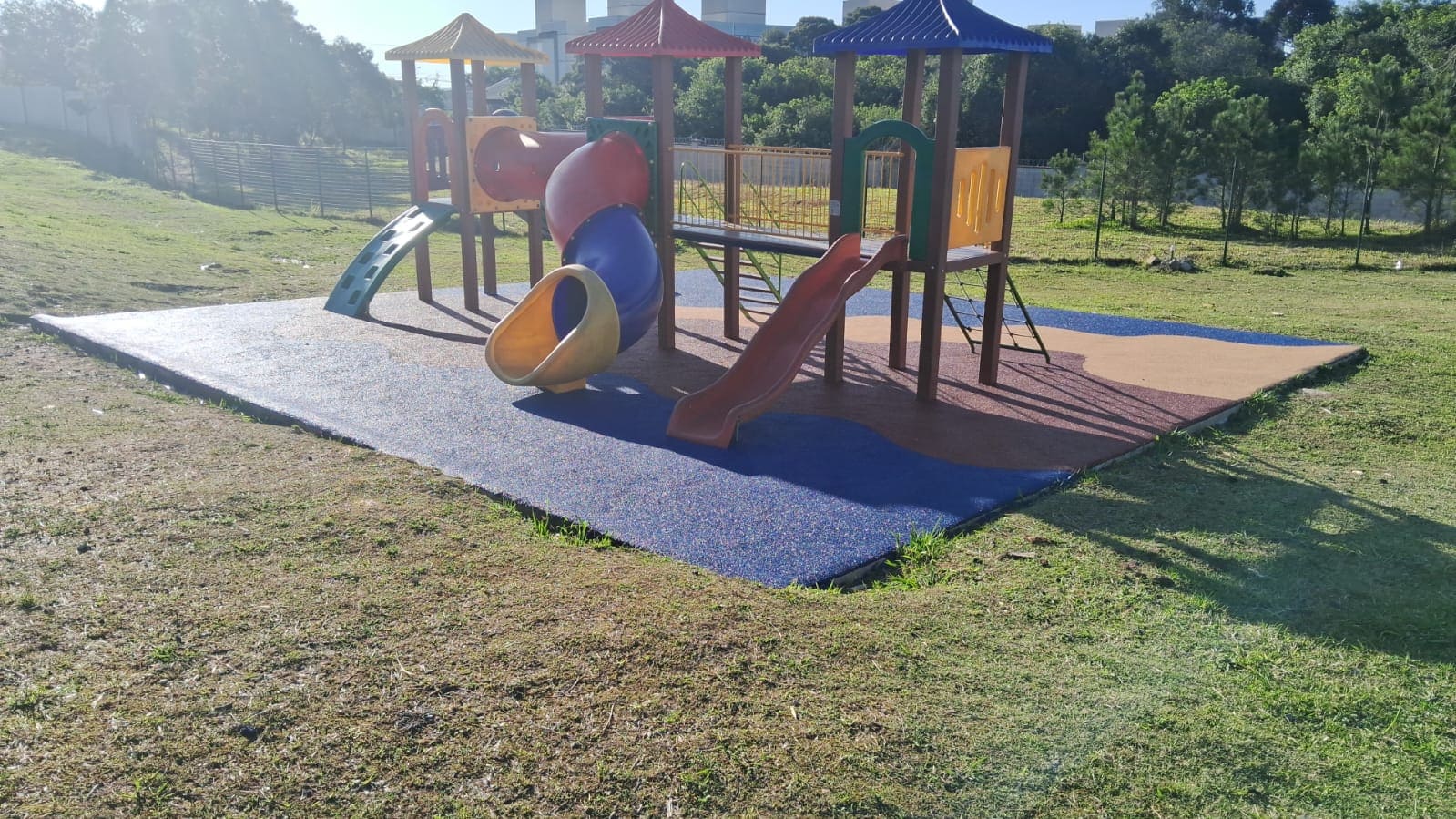 Escola no interior de Curitiba solicitou um espaço externo voltado ao lazer e à interação das crianças. O desafio era criar uma área que fosse, ao mesmo tempo, divertida, visualmente atrativa e, acima de tudo, segura para os pequenos.